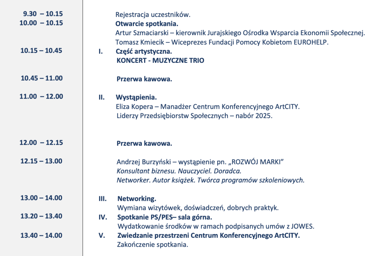 • Wymiana doświadczeń i najlepszych praktyk w zakresie przedsiębiorczości społecznej.